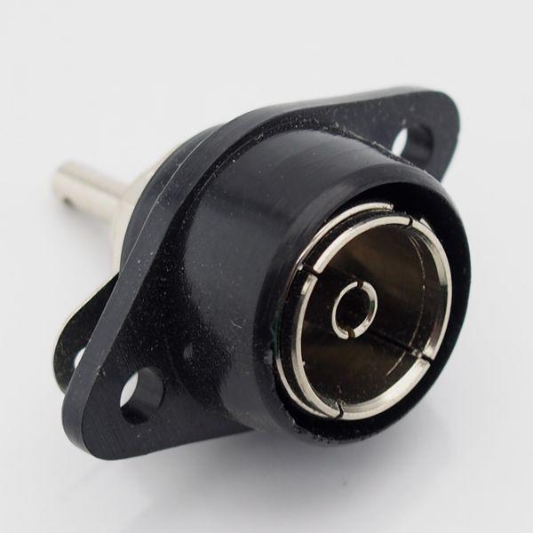 Koax beépíthető aljzat - Forrasztható - Fekete műanyag ház Minimum rendelhetö mennyiség: 5db