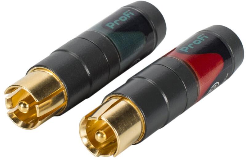 NEUTRIK NF2C-B/2 profi RCA dugó/pár lengő, aranyozott, rugós testérintkező, kábelszorító